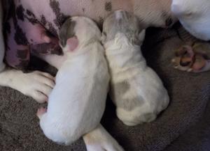 August 28, 2020. Lucy had a litter of three puppies, all females. Sadly, one puppy was born with a cleft palate and had to be put down. Honey is a beautiful blue fawn merel pied with colored ears. We are very grateful for Barbara Lockwood’s generosity in giving us the pick of the litter. We are also grateful for Lucy and Johnny for giving us the start of Bluecairo Frenchies.